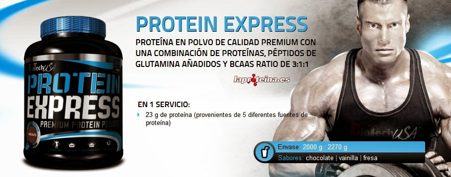 Protein Express de BioTech USA es una nueva mezcla proteica de calidad premium que incluye 5 de las mejores fuentes proteicas que existen como son la proteína de concentrado de suero de leche, la proteína de concentrado de leche, el hidrolizado de proteína de concentrado de carne de vaca, los péptidos de glutamina y los BCAAs con un exclusivo ratio 3:1:1 entre leucina, isoleucina y valina.