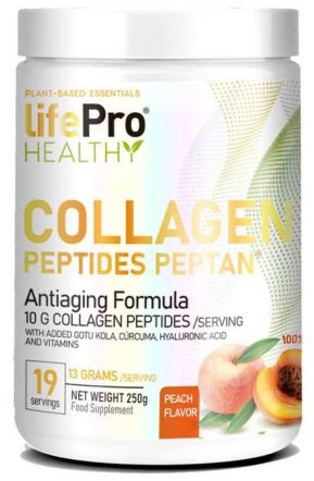 Collagen Peptides Peptan de LifePro Nutrition es un suplemento en polvo que contiene colágeno hidrolizado Peptan®, lo que nos asegura una máxima calidad y pureza, que además está enriquecido con extracto seco de Gotu kola, cúrcuma Longa Cursol®, ácido hialurónico, vitamina C y vitamina E.