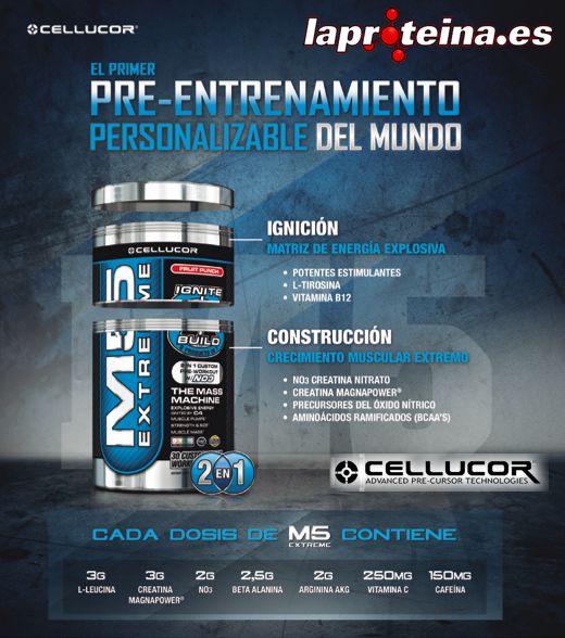 Cada dosis Cellucor M5 Extreme se encarga de ofrecer la cantidad óptima de energía, garantizando la intensidad del entrenamiento final y una extraordinaria concentración mental.