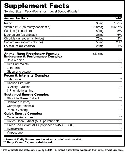 Cada dosis ultra concentrada de Animal Rage contiene una cantidad increíble de ingredientes para la energía, la concentración, el rendimiento y la resistencia.