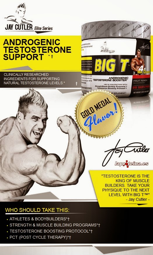 Big T™ de Jay Cutler Elite Series™ es un potenciador de los niveles de testosterona totalmente natural que contiene únicamente ingredientes probados en estudios científicos y que está diseñado para modular los niveles de testosterona y minimizar los estrógenos.