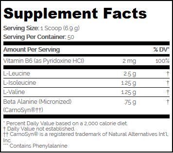 Vitamina B6 (piridoxina HCl), L-leucina, L-isoleucina, L-valina, Beta alanina.