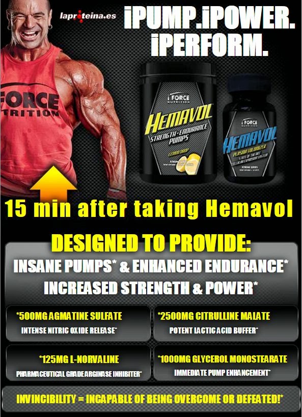 Nueva versión del voluminizador plasmático de IForce Nutrition. El nuevo Hemavol™ es el suplemento de pre-entreno diseñado para generar unos bombeos musculares explosivos y una gran voluminización miofibrilar plasmática.