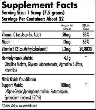 La primara matriz denominada Hemodynamix Matrix ha sido científicamente formulada y dosificada de forma precisa para aumentar drásticamente las acciones de la enzima oxido nítrico sintasa (NOS), mientras que al mismo tiempo aumenta extraordinariamente la concentración plasmática de compuestos clave que son críticos para la producción de oxido nítrico. Al mejorar la enzima NOS y aumentar al máximo la concentración de aminoácidos necesarios para producir el oxido nítrico, la matriz Hemodynamix, literalmente fuerza el plasma intracelular, el glucógeno, y el agua en las células musculares, creando de un bombeo celular diferente a cualquier otra cosa que hayas experimentado jamás.