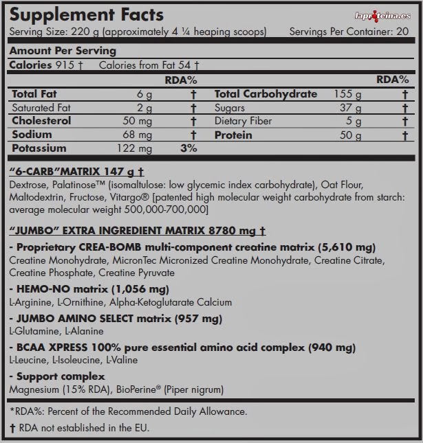 Jumbo™ incluye casi 9 gramos por servicio de la extraordinaria matriz anabolica “JUMBO-SIZE” que incluye en su fórmula:
