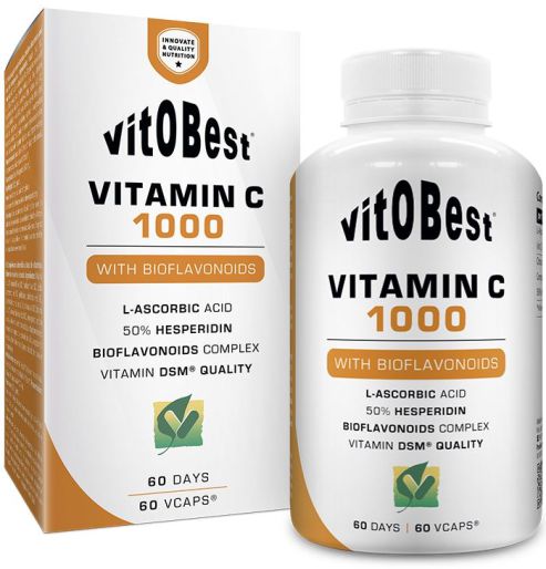 Vitamin C 1000 de Vitobest es un suplemento en cápsulas que proporciona una potente dosis de vitamina C como ácido L-ascórbico, enriquecido con complejo de bioflavonoides cítricos (50% hesperidina) que actúan en sinergia natural con la vitamina C.