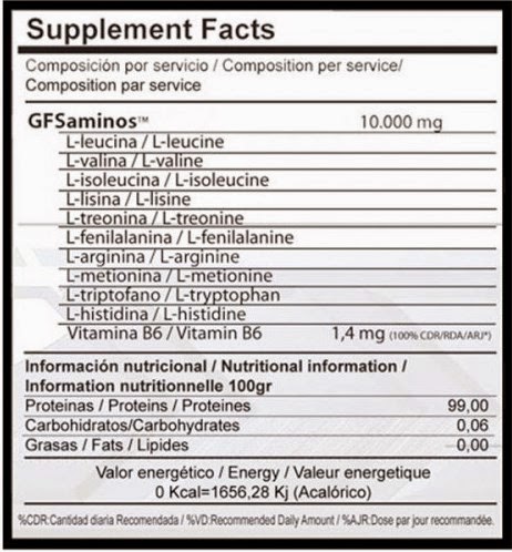 ADVERTENCIA: No tomar nunca ninguna fuente proteica junto con los GFS Aminos siempre deben tomarse de forma aislada para no interferir en el efecto deseado del producto.