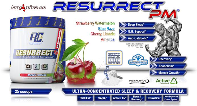 "Ronnie, ¿cómo creces durmiendo tan poco?" "Esta es una pregunta que he oído muchas veces una y otra vez durante el curso de mi carrera. Cualquiera que me conozca sabe que me voy a dormir, a deshora y tengo un mínimo de horas de descanso. Entonces, ¿cómo he ido creciendo todos estos años? Bueno, la respuesta es simple. Duermo intensamente, eso es, cuanto más profundo es el sueño, menos tiempo necesitas. Por eso he creado Resurrect-P.M.