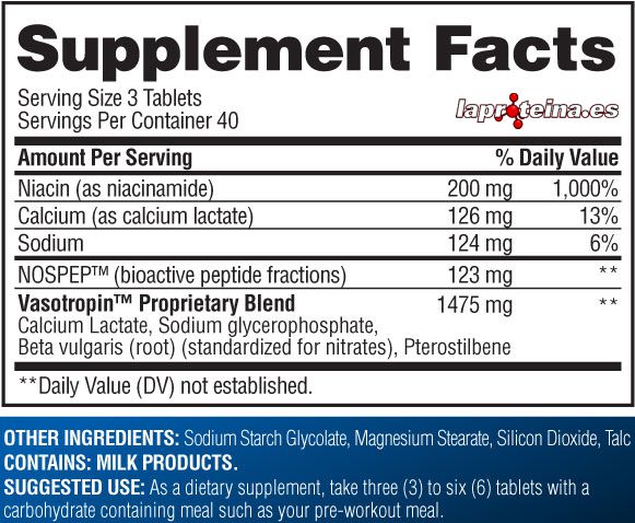 Ingredientes por dosis de Gaspari Vasotropin: