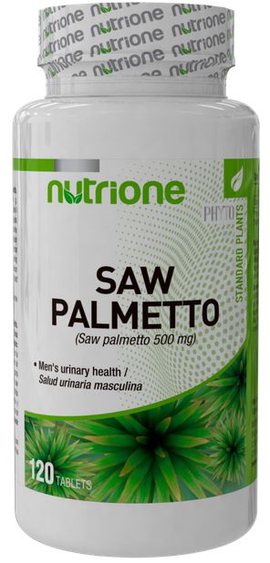 Saw Palmetto de NutriOne Nutrition & Health contiene 500 mg de extracto seco de saw palmetto (Serenoa Repens) por tableta.