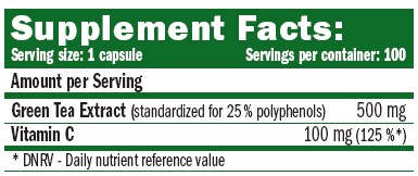 Green Tea Extract contiene vitamina C, que es una vitamina hidrosoluble y fortalece el sistema inmunológico. Es necesaria para óptimo funcionamiento de las enzimas encargadas de descomponer los alimentos para que sus nutrientes puedan ser aprovechados y las grasas se absorban de manera adecuada y no se acumulen en el cuerpo creando sobrepeso.