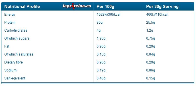 - Posee el porcentaje muy alto de proteína por dosis (85% de porcentaje real proteico).