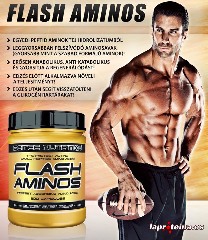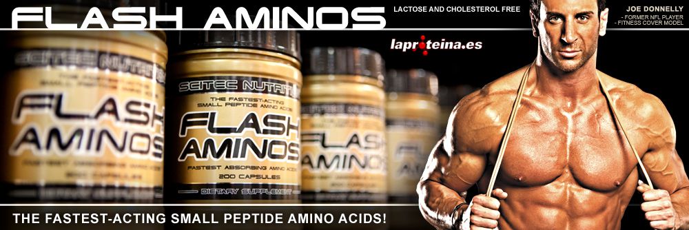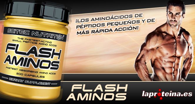 Flash Aminos de Scitec Nutrition es una fórmula única de aminoácidos peptídicos compuesta en su mayoría por di- y tri-péptidos de menos de 500 daltones de peso molecular.