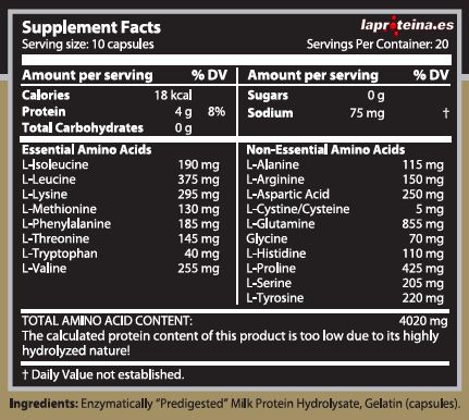 Hidrolizado de proteína de leche enzimáticamente "predigerido", gelatina (cápsula).