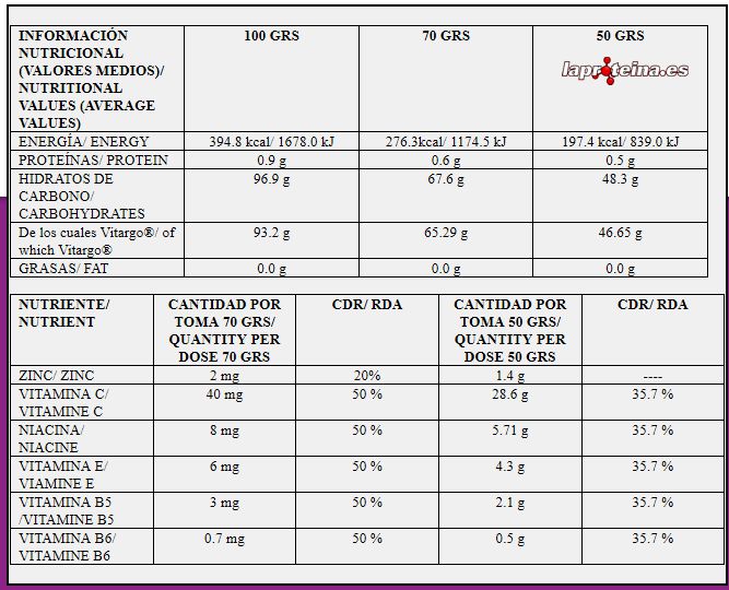 - 70% más rápido en el rellenado de que otros carbohidratos, después de entrenamientos duros e intensos.