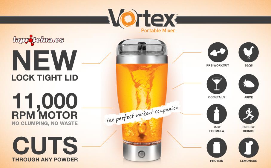 Disfruta de la nueva forma de preparar tus batidos con la nueva batidora Vortex™ Portable Mixer en exclusiva para www.laproteina.es