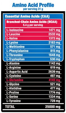 Finalmente, para mejorar aún más las propiedades de su mezcla proteica ha sido reforzada con Tri-Amino Recovery Blend una mezcla de taurina, Glicina y Creatina Monohidrato.
