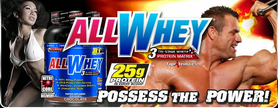 AllWhey™ de AllMAx™ es una fantástica proteína que contiene la matriz denominada Tri-Stage Whey Protein Matrix™ compuesta por aislado de proteína de suero CFM®, concentrado de proteína de suero microfiltrado y proteína de suero hidrolizada, reforzada con taurina, creatina, ácidos grasos esenciales y enzimas digestivas.