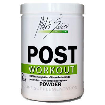 Milos Sarcev Signature Line POST WORKOUT se toma inmediatamente después de entrenar. Con él se completa "Sistema Híper Anabólico de 3 Fases" de Milos Sarcev proporcionando de forma adicional todos los nutrientes necesarios para la súper compensación de la construcción muscular o hipertrofia.