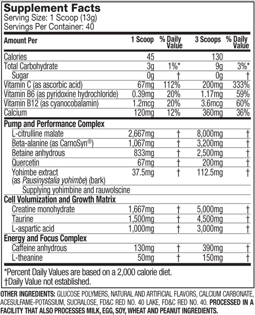 Una dosis de 3.200 mg de Beta-alanina se ha incorporado ya que ha demostrado en estudios clínicos mejorar la construcción del músculo y la potencia. La mayoría de las otras fórmulas pre-entrenamiento administran una dosis cuestionable de este ingrediente escondido en una mezcla patentada.