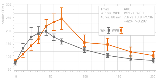Respuesta de la insulina en proteína de suero (WPI) y en proteína de suero hidrolizada (WPH)