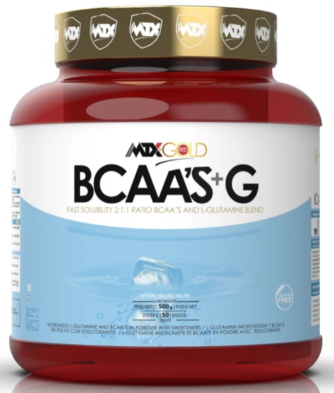 BCAA+G de MTX Elite BodyBuilding es un suplemento nutricional en polvo diseñado para deportistas que contiene una combinación de los tres aminoácidos de cadena ramificada (L-Leucina, L-Isoleucina, y L-Valina) en una proporción 2:1:1, L-glutamina al 50% y enriquecido con glicina.