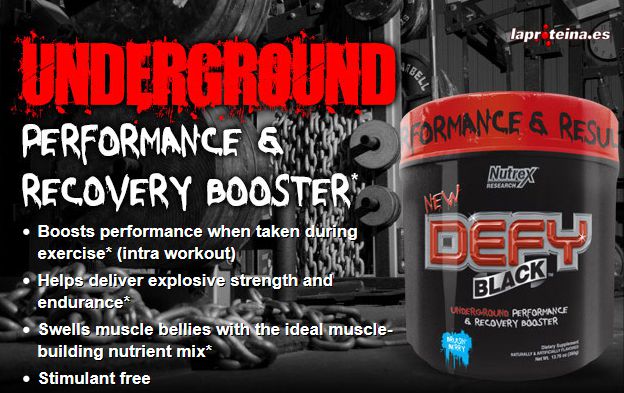 Defy Black™ de Nutrex Research dentro de su serie más extrema Underground es la fórmula perfecta de intra-entrenamiento para ser consumida mientras entrenas.