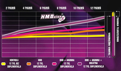 El HMB facilita el aumento de la fuerza y de la masa muscular magra. Los estudios científicos realizados indican que la actividad del HMB aumenta considerablemente en presencia de creatina y arginina. Estas dos sustancias tienen una acción sinérgica en dos aspectos básicos del funcionamiento del HMB. Por un lado potencian la síntesis de proteínas lo que conduce a un aumento de la masa muscular y al mismo tiempo se produce un aumento en la utilización de la grasa para la producción de energía contribuyendo así a una reducción sustancial del tejido adiposo subcutáneo.