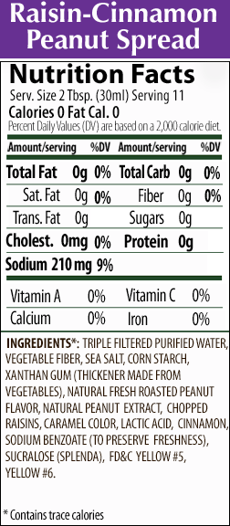 Cinnamon Raisin Peanut Spread de Walden Farms es una rica crema de cacahuete con canela y pasas dulces sin calorías ideal para untar en tostadas, galletas o dulces.