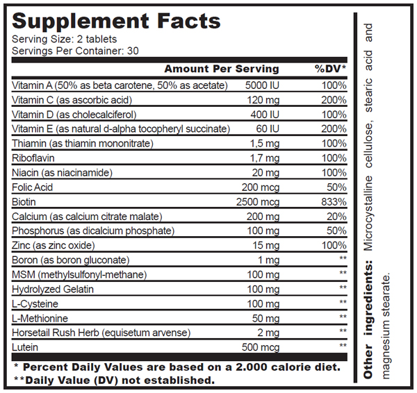 La fórmula de Women´s Hair, Skin & Nails contiene una valiosa combinación de ingredientes activos desarrollados específicamente para satisfacer las necesidades especiales del cuerpo de la mujer.