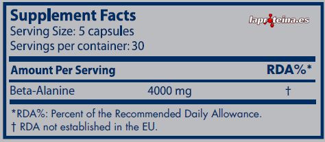 - Por cada kg de peso corporal cuenta 50 mgs de beta alanina.