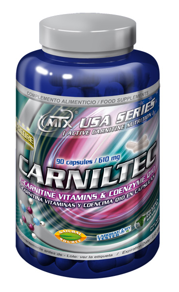 Carniltec es una fórmula de última generación que contiene L-Carnitina, un complejo vitamínico del grupo B (vitaminas B3, B5, B6) y coenzima Q-10 en cápsulas de MTX presentada dentro de su nueva línea Elite Sport.