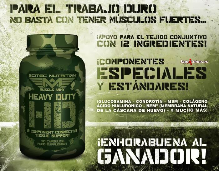 Heavy Duty de Muscle Army es un complejo destinado a la protección de las articulaciones, especialmente de personas de gran actividad física y deportistas basado en una matriz de 12 poderosos componentes que incluye ingredientes especiales adicionales, además de los más comunmente utilizados.