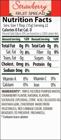 La mermelada Strawberry Fruit Spread es una auténtica mermelada hecha con ingredientes de primera calidad. Está hecha con extractos concentrados de frutas y sabores naturales lo que la convierte en una excelente opción para disfrutar con tostadas, galletas o dulces ahorrándose más de 600 calorías, sin incorporar grasas, azúcares ni carbohidratos.