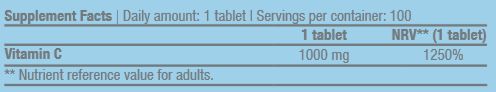 - Proporciona 1.000 mg de vitamina C por dosis de una tableta.