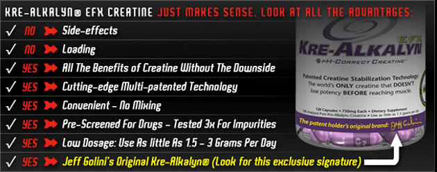Por lo tanto, Kre-Alkalyn EFX es la única creatina en el mundo que no se convertirá en CREATININA de bio-deshecho antes de alcanzar tus células musculares.