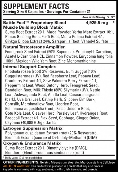 Battle Fuel™ es un intenso y natural potenciador de la testosterona y del rendimiento que también se puede usar como una eficaz fórmula de terapia post ciclo.