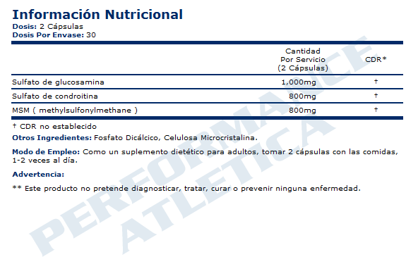 Para el cuidado de tus articulaciones. Glucosamina, sulfato de condroitin y la fórmula MSM.