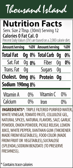 Thousand Island Salad Dressings es una salsa de tomate única libre de glúten, es como tomar una auténtica salsa pero sin aportar las calorías que aportarías con una salsa tradicional, siendo una salsa apta para cualquier tipo de dieta y apta para evitar debilidades y momentos en los cuales se requiere comer algo realmente sabroso.