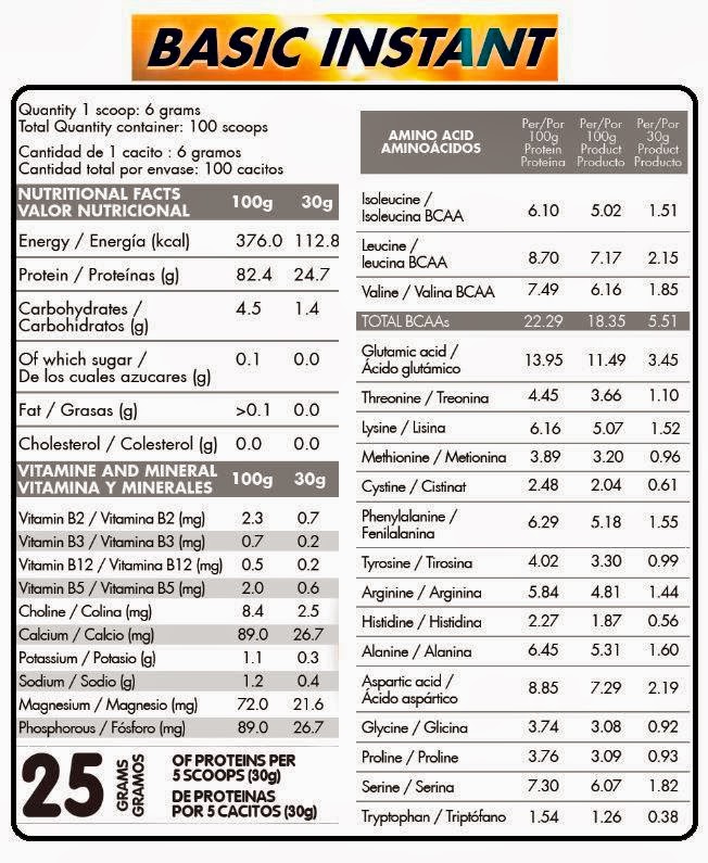 5 cacitos de Basic Instant (30 gramos) equivale a 24,5 gramos de proteína =8 claras huevo