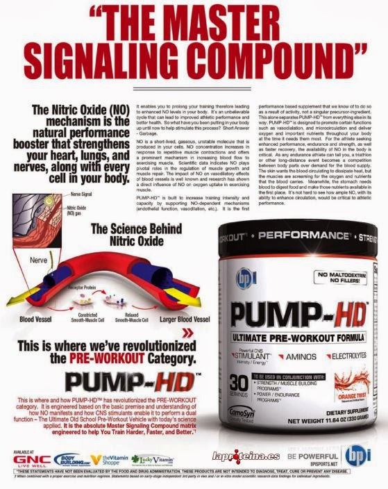 El verdadero "bombeo muscular" lo proporciona el entrenamiento. Es decir, el mayor "bombeo muscular" que puedas alcanzar no te lo va a dar ninguna pastilla o polvo, ese bombeo solo puede venir dado por un gran entrenamiento. Por eso la fórmula de Pump-HD™ no se centra en aumentar la producción de óxido nítrico, sino que contiene todos los ingredientes que te van a permitir entrenar con una gran intensidad para que de ese modo consigas los mayores bombeos musculares.