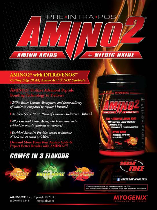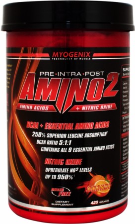AmiNO2® de Myogenix es un nuevo suplemento que utiliza la tecnología más moderna para proporcionarte las mejoras formas de aminoácidos de cadena ramificada (BCAAs) aminoácidos esenciales y potenciadores de la producción de óxido nítrico en un solo producto para utilizar antes, durante y después del entrenamiento.