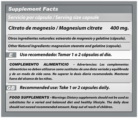 Advertencias: el citrato de magnesio puede tener un efecto laxante, de manera que puede ser necesario modificar la sugerencia de uso para satisfacer sus necesidades personales. Si experimenta este efecto, se recomienda que reduzca la dosis.