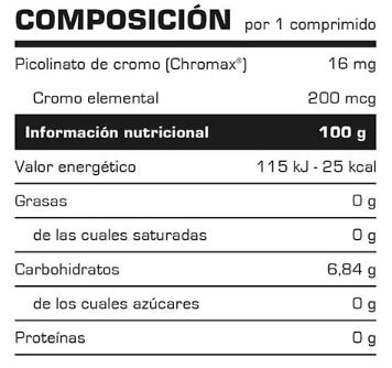 - Proporciona 200 mcg de cromo con una alta biodisponibilidad.