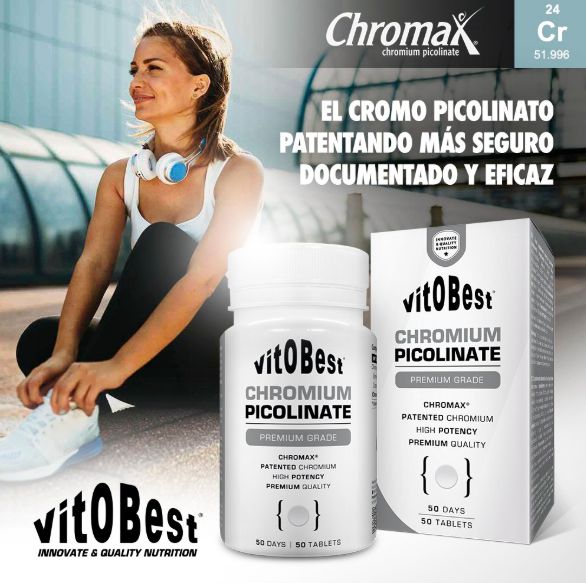 El cromo es un oligoelemento esencial que está significativamente reducido en las dietas actuales debido al procesamiento excesivo de los alimentos. El picolinato de cromo es un compuesto orgánico de cromo trivalente, un mineral traza esencial y cofactor de la insulina. Es una de las formas más biodisponibles de cromo, ya que el ácido picolínico (picolinato) es un metabolito derivado del triptófano que mejora la absorción de cromo y su biodisponibilidad.