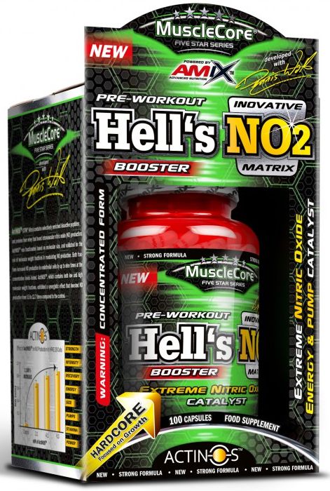 Hell's NO2 de la nueva línea MuscleCore® de Amix™ es un suplemento de pre-entrenamiento de última generación en cápsulas, con el que podrás aumentar tu fuerza y tu resistencia, además de unos increíbles bombeos musculares para alcanzar un mayor rendimiento en el gimnasio y de este modo conseguir aumentar tu masa muscular.