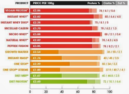 Nutralys® Pea Protein (vainas de guisantes (Pisum Sativum)), colorantes naturales (polvo de cacao reducido en grasa (solo variedades de chocolate), betanina (solo variedades de bayas y frutas), betacaroteno (solo variedades de plátano, vainilla y fruta suave)), aromatizantes, espesantes (carboximetilcelulosa), endulzantes naturales (Stevia), Digezyme® Digestive Enzyme Complex (Amilasa, Proteasa, Celulasa, Lactasa, Lipasa), Esporas probióticas LactoSpore® (Bacillus Coagulans).
