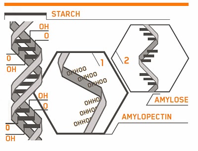 El almidón esta compuesto por amilosa y amilopectina, dos elementos que se diferencian principalmente en que únicamente el contenido de la amilopectina es soluble en agua, lo que significa que nuestro cuerpo es capaz de digerir y absorber con facilidad la amilopectina presente en A70 Carbofuse™. Otra diferencia significativa es que la amilopectina presenta una estructura altamente ramificada, mientras que la amilosa posee una estructura lineal.