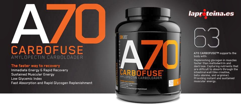 A70 Carbofuse™ proporciona a nuestro cuerpo los siguientes beneficios: reposición de glucógeno en los músculos con mayor rapidez que la maltodrextrina y la dextrosa. Captura nutrientes difíciles de absorber por la pared intestinal (como la creatina, beta-alanina y arginina). Suministra energía muscular sostenida e instantánea.