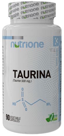 Taurina de NutriOne Nutrition & Health es un suplemento en cápsulas que proporciona 500 mg del ácido orgánico taurina (no es estrictamente un aminoácido ya que carece del grupo carboxilo) por dosis de una cápsula, enriquecido con vitamina B6.